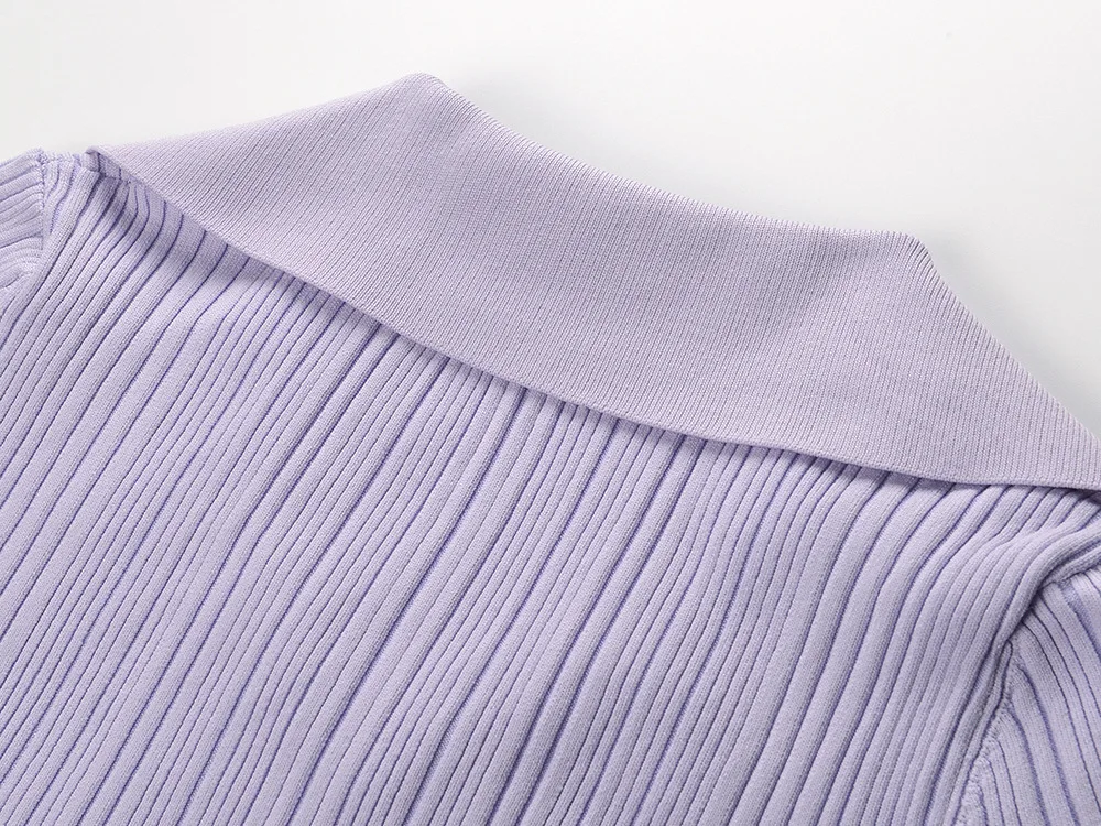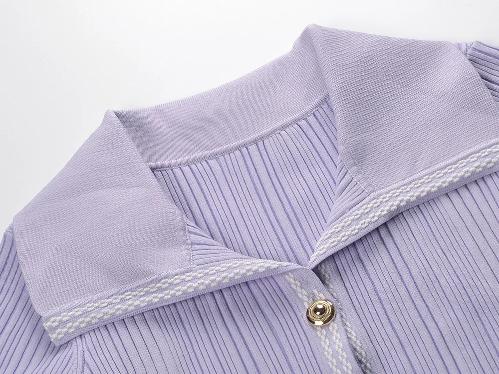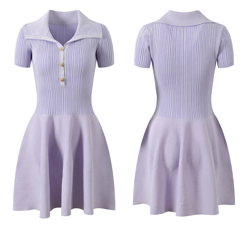 Collared Ribbed Knit Button-Front Mini Dress